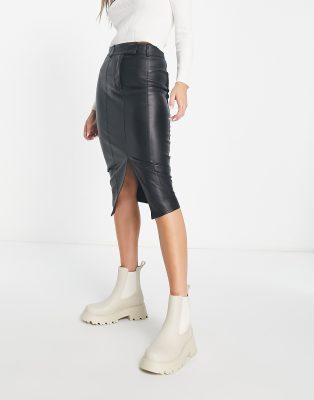 Product Item: Black leather pencil new arrivals skirt river island