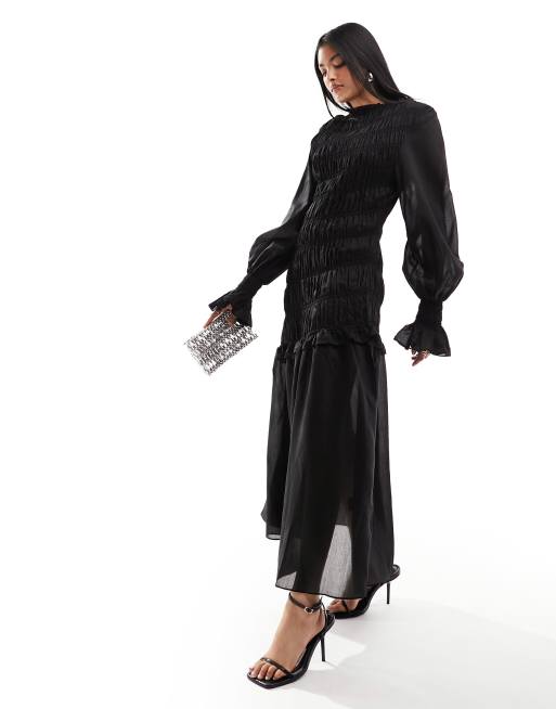 Black ruched midaxi new arrivals dress