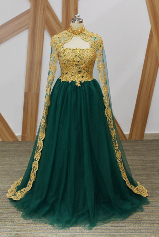 Bottle green and gold new arrivals dress