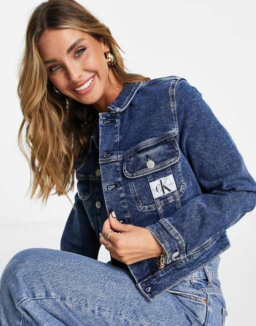 Calvin klein cropped denim new arrivals jacket