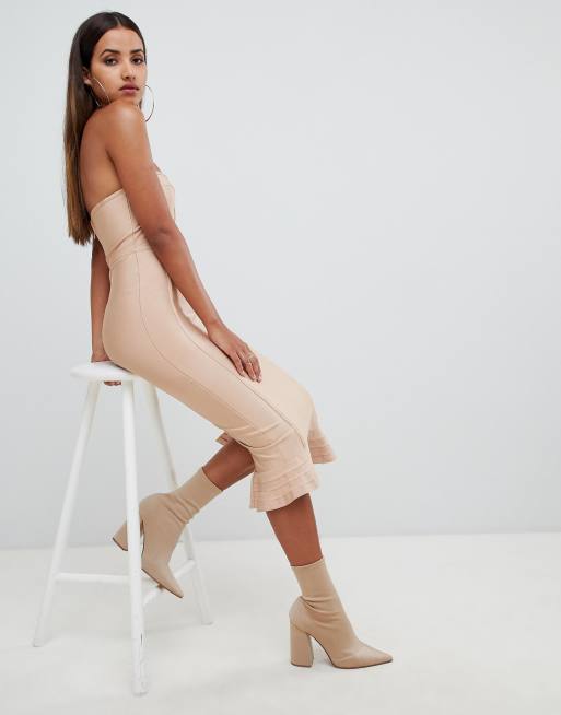 Camel frill hem new arrivals bandage midi dress