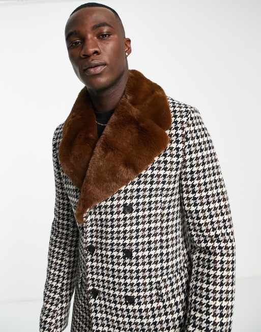 Checked coat with fur new arrivals collar
