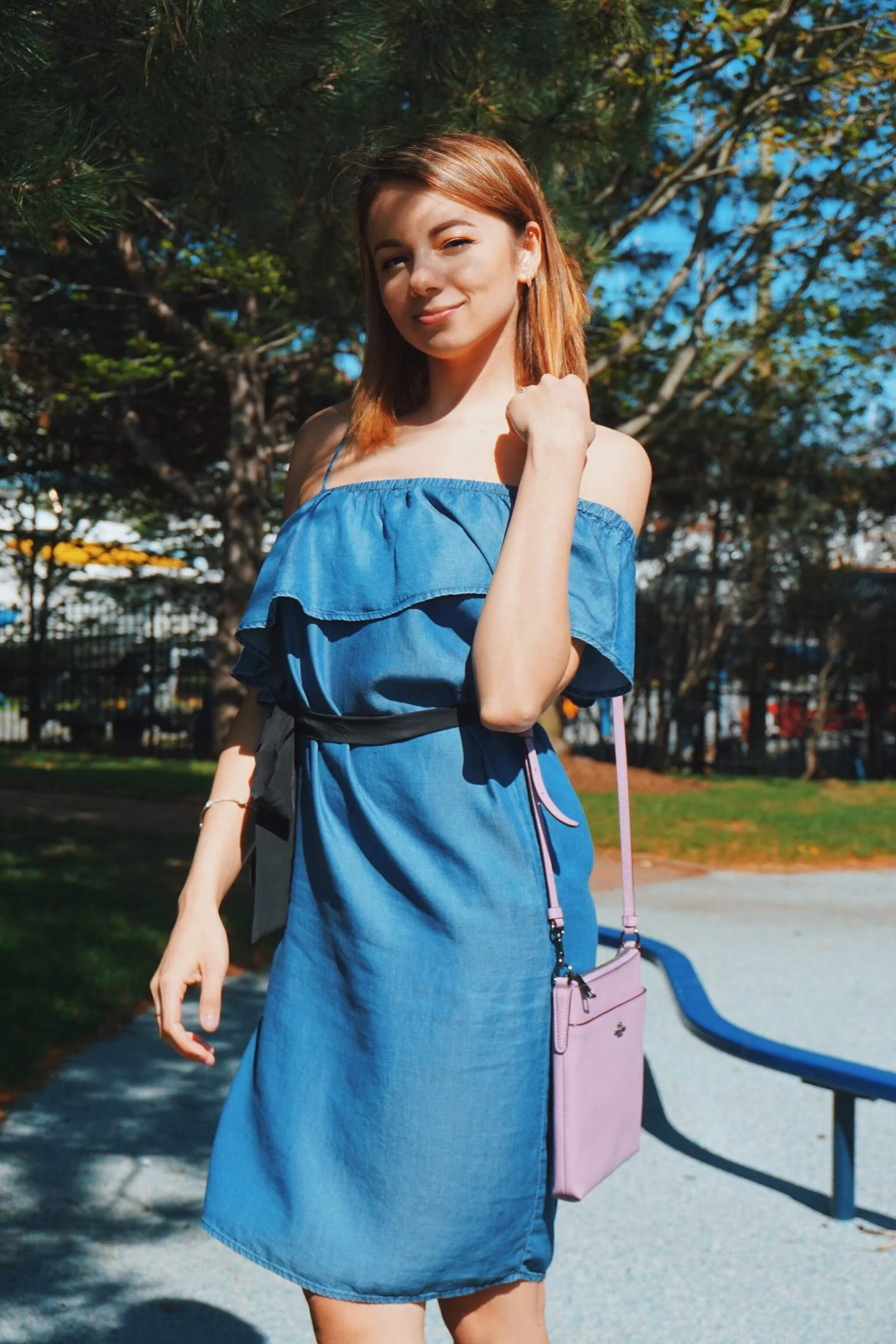 Denim new arrivals shoulder dress