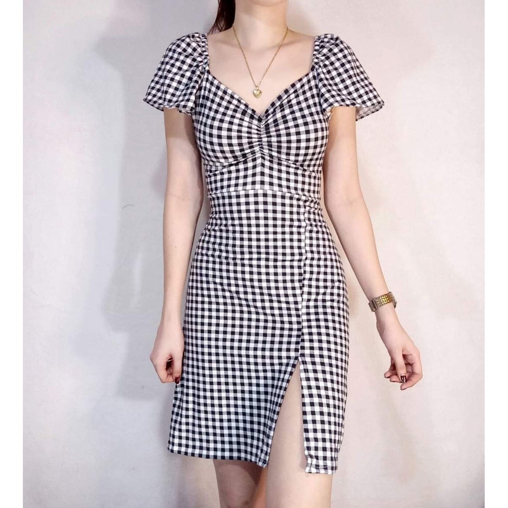 Gingham new arrivals fitted dress