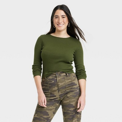 Green shirt womens long new arrivals sleeve