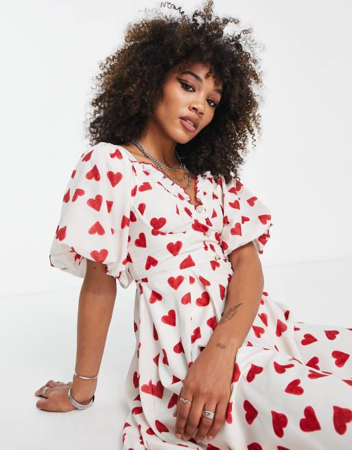 Heart puff sleeve new arrivals dress