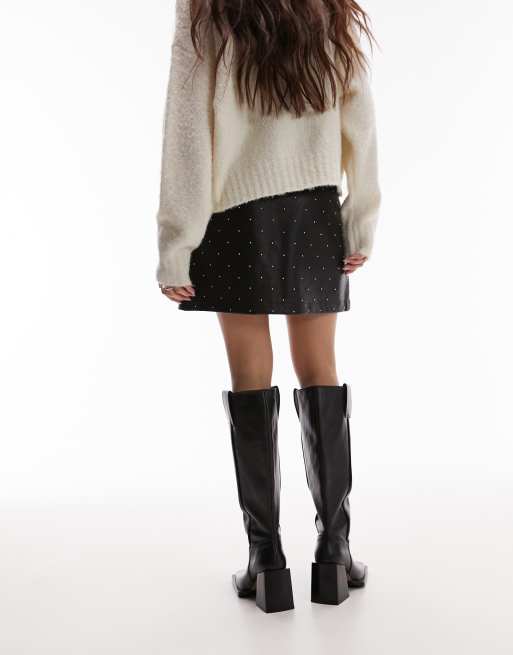 Product Item: High waisted studded leather new arrivals skirt