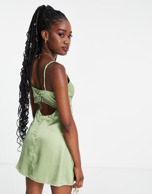 Khaki satin mini new arrivals dress