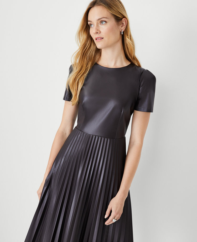 Leather dress with pleated new arrivals skirt