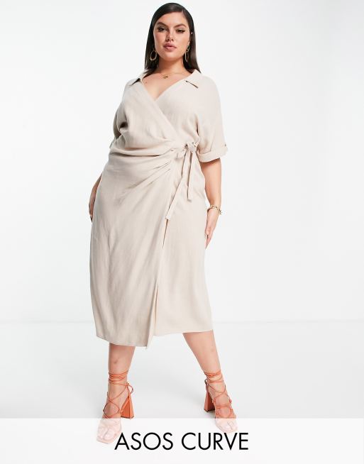 Linen wrap midi new arrivals dress