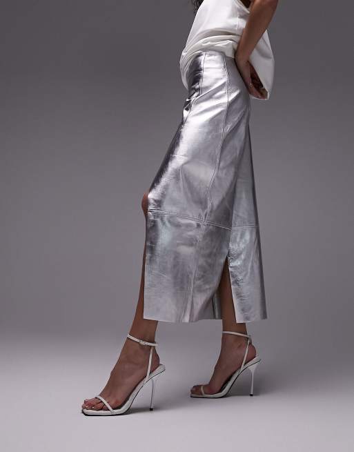 Metallic leather midi new arrivals skirt