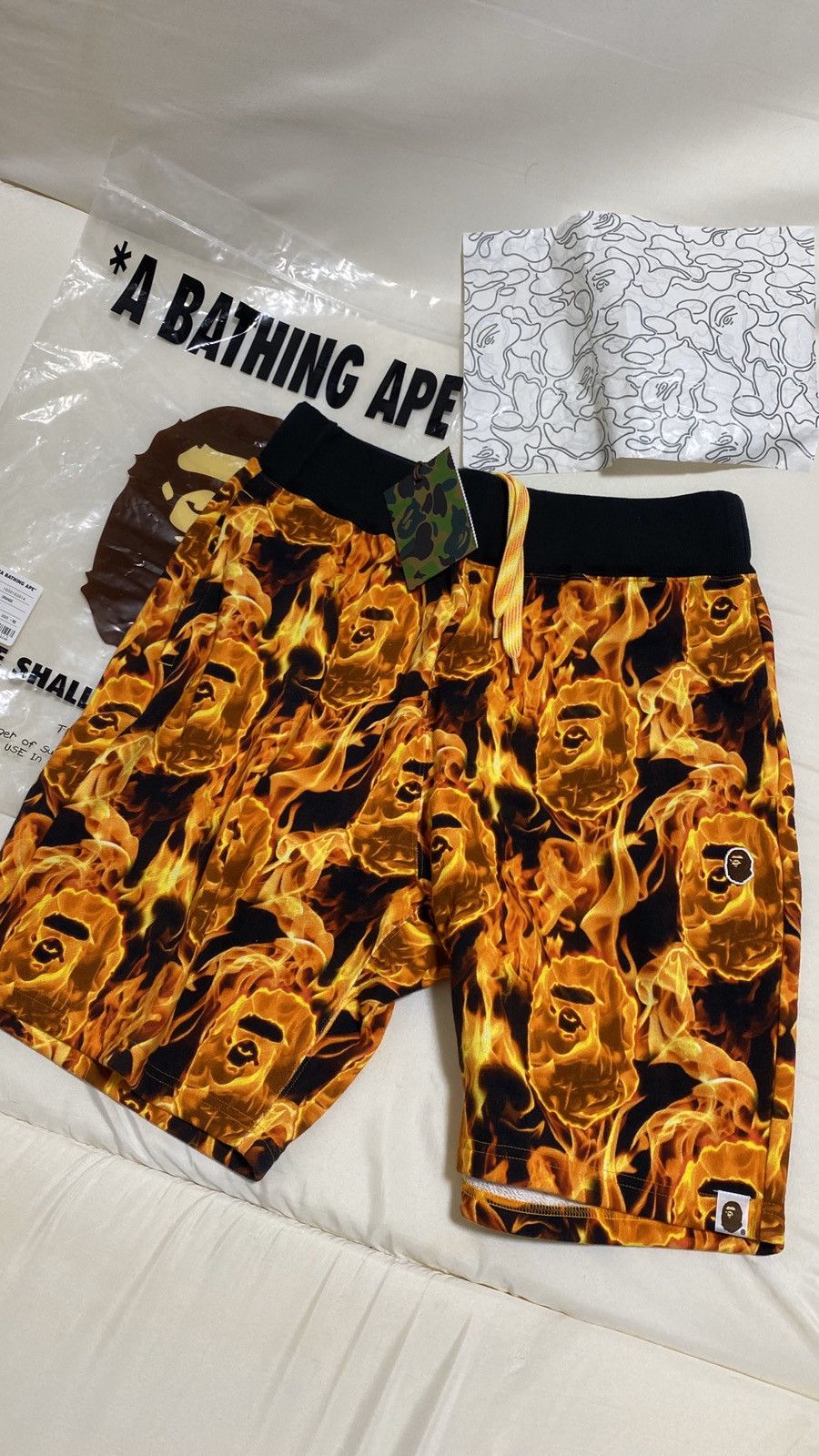 Orange new arrivals bape shorts