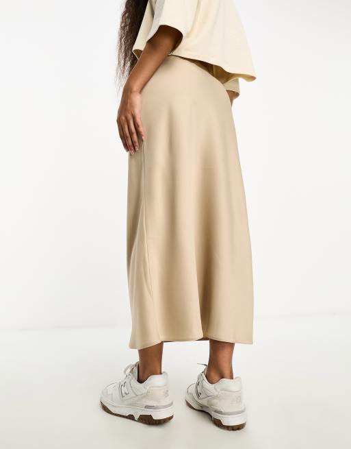 Product Item: Petite beige bias new arrivals cut midi skirt
