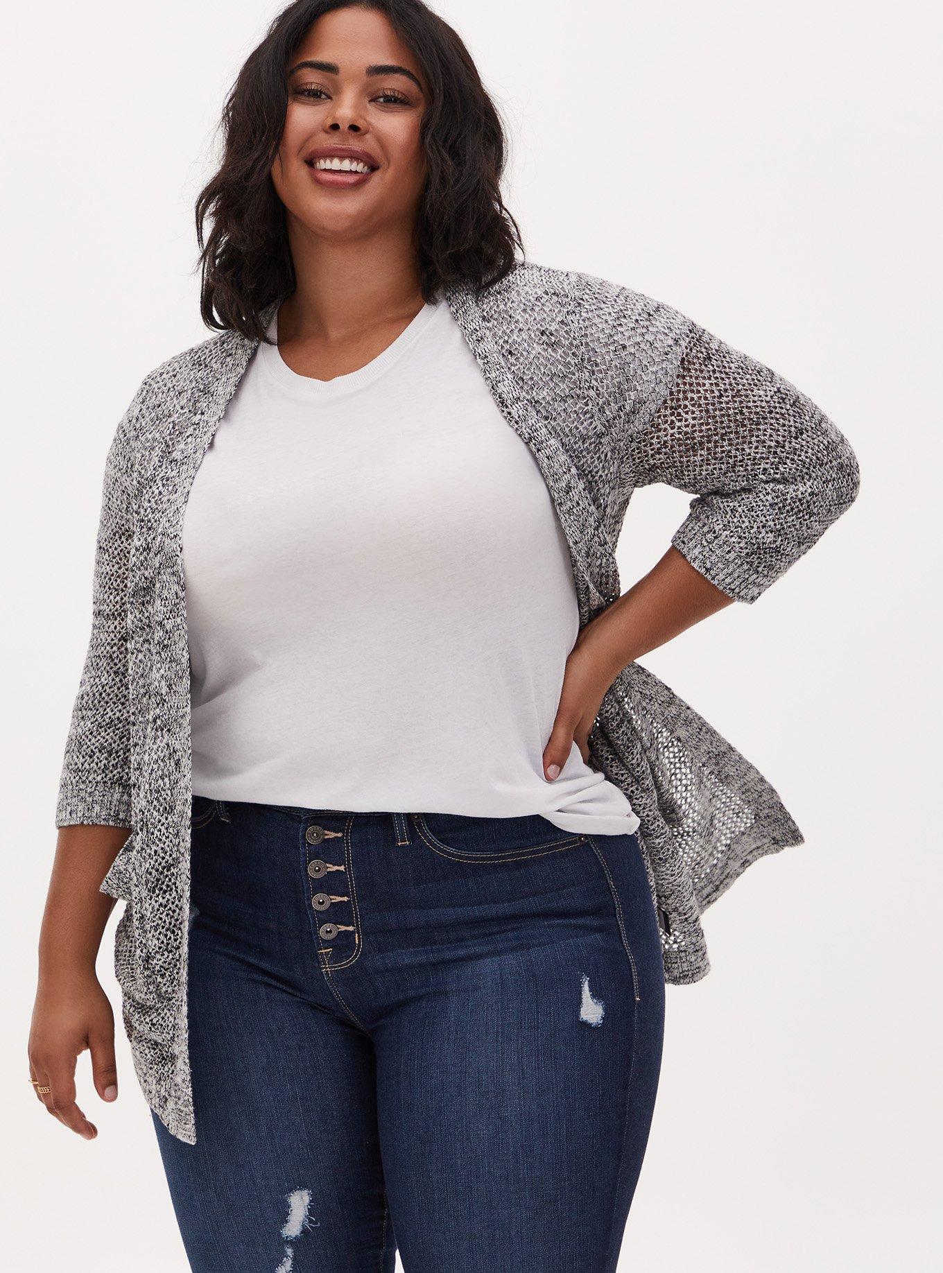Plus size gray cardigan new arrivals sweater