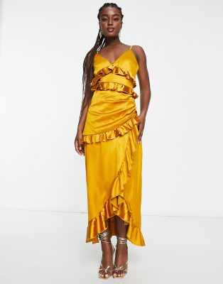 Ruffle detail plunge midi new arrivals dress