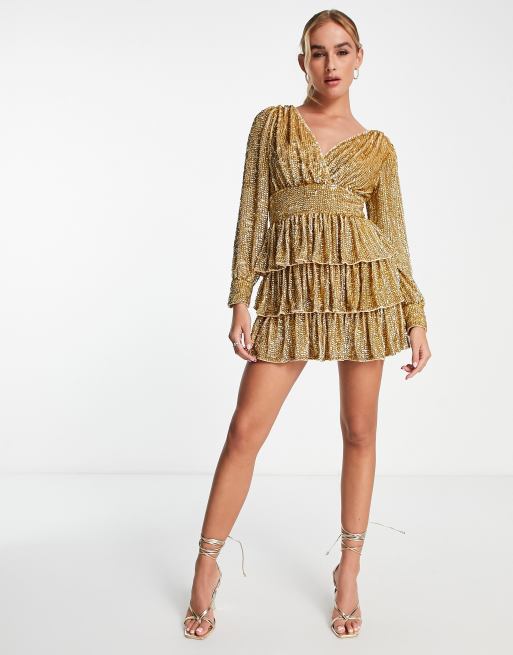 Tiered mini dress with new arrivals sleeves