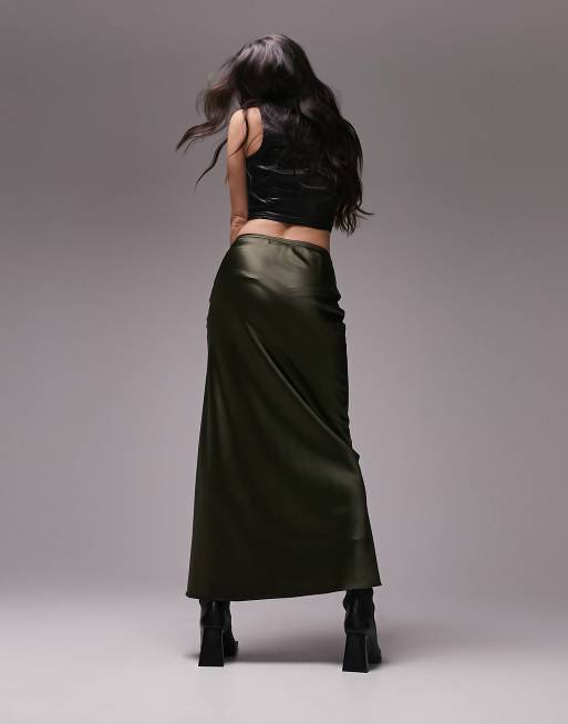Topshop satin bias new arrivals midi skirt khaki
