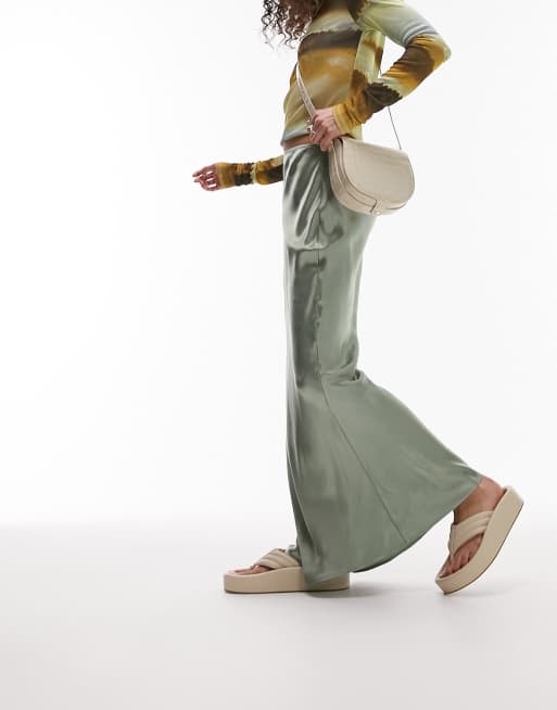 Product Item: Topshop satin bias new arrivals midi skirt khaki