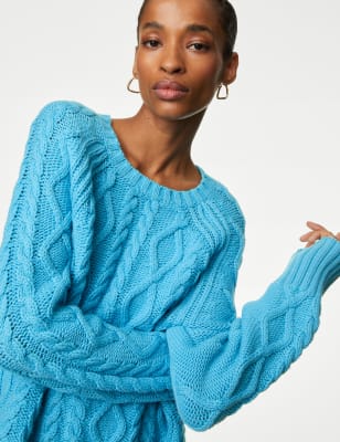 Turquoise cable knit new arrivals sweater
