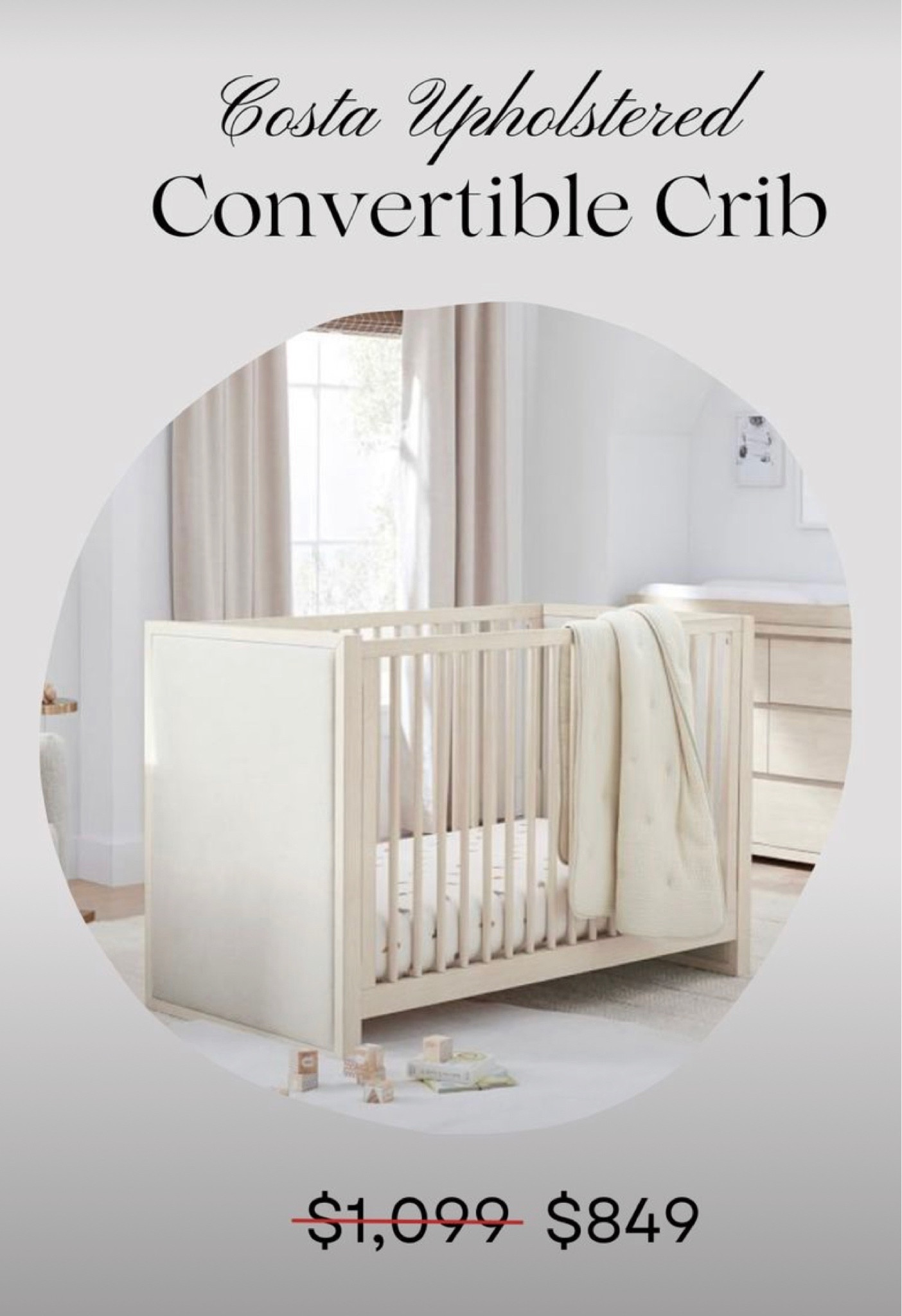 Product Item: Upholstered new arrivals convertible crib