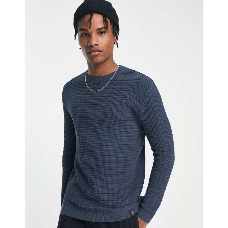Waffle knit sweater new arrivals mens
