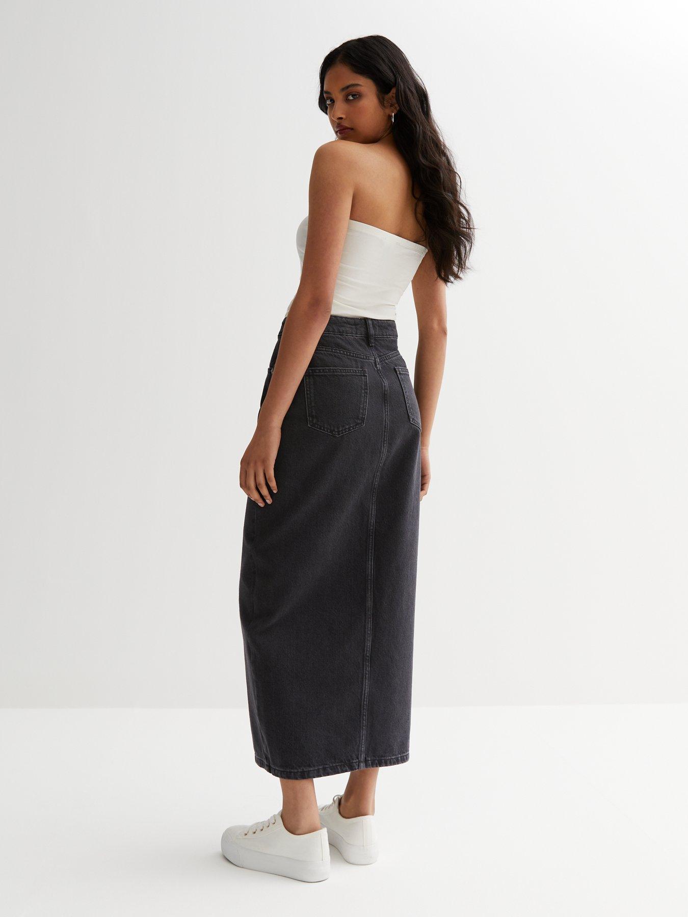 Washed black denim new arrivals midi skirt 152-329