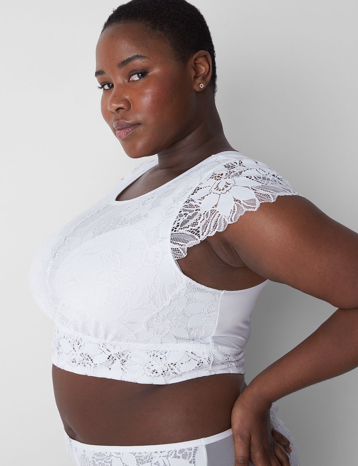 White lace crop new arrivals top short sleeve