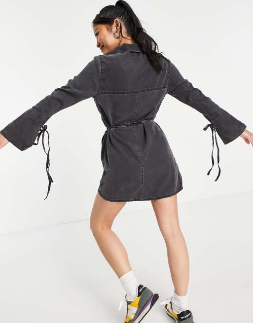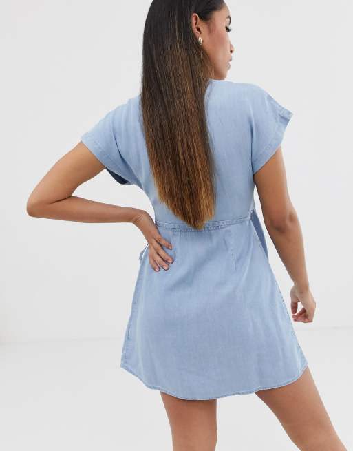 Asos denim wrap new arrivals dress