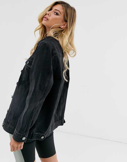 Asos design denim girlfriend jacket in washed new arrivals black