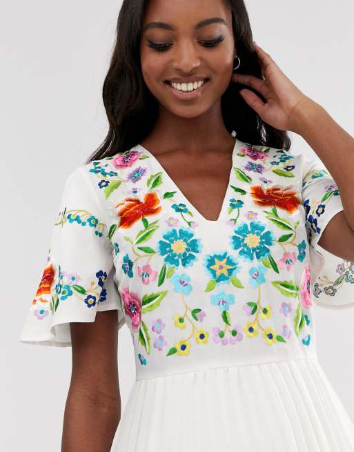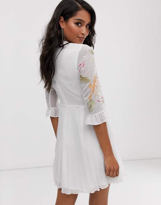 Asos design pleated new arrivals embroidered mini dress
