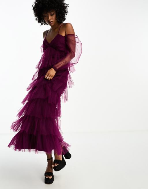 Product Item: Asos design premium lace top tulle maxi new arrivals dress
