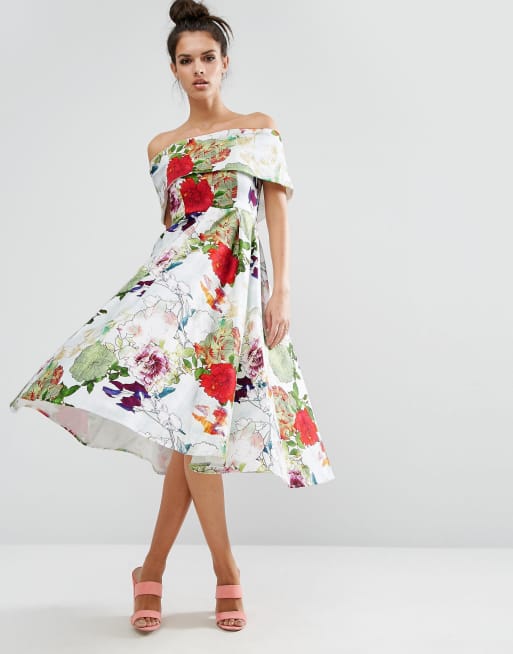 Asos floral bardot new arrivals dress