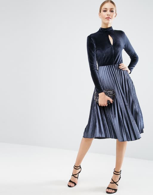 Asos pleated velvet new arrivals dress