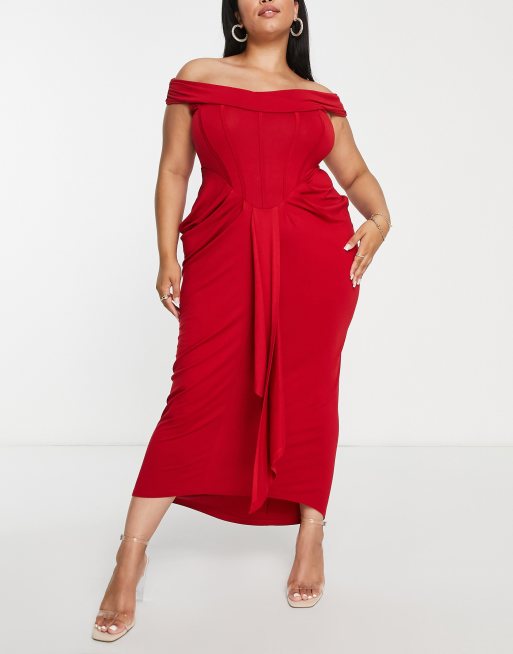 Asos red bardot new arrivals dress