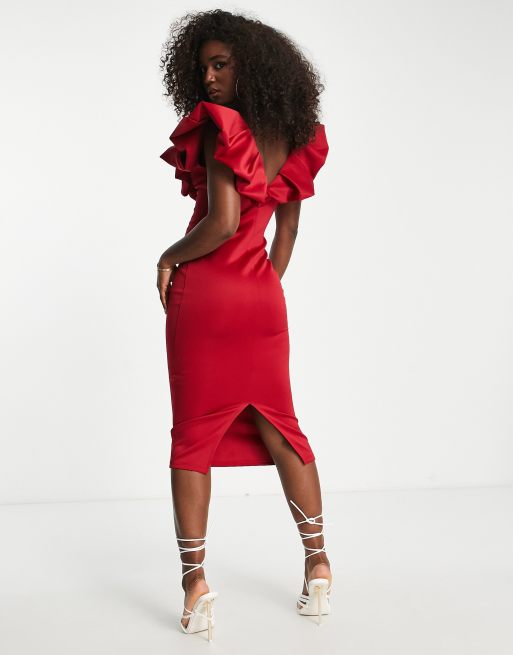 Asos red frill new arrivals dress