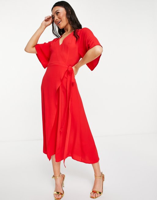 Asos red wrap new arrivals dress