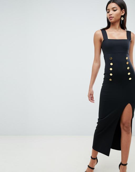 Asos square neck scuba new arrivals maxi dress with thigh split