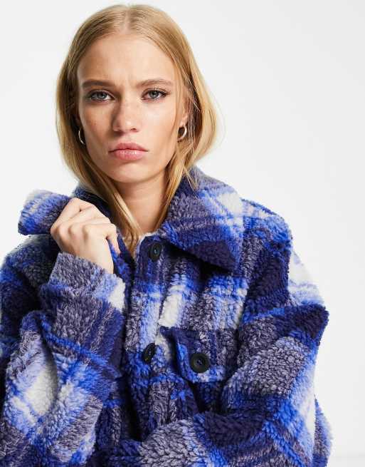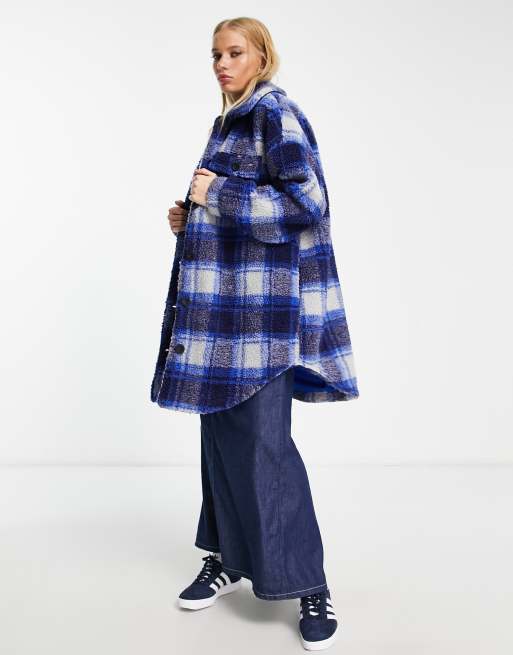 Bershka check teddy longline new arrivals coat