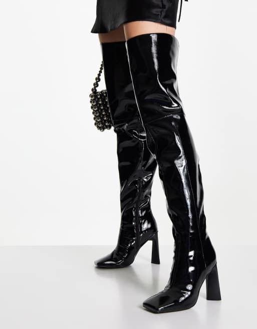 Product Item: Black patent over knee new arrivals boots