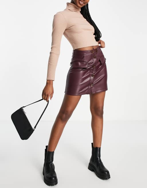 Burgundy leather skirt new arrivals asos