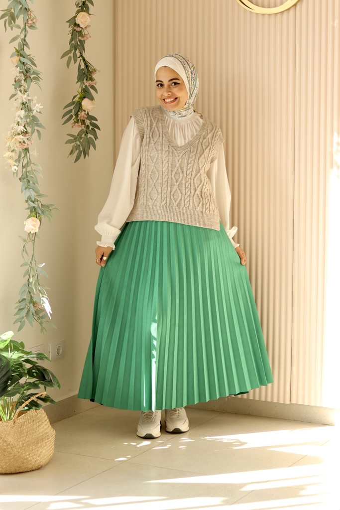 Product Item: Green accordion pleated new arrivals skirt