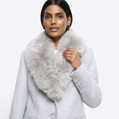 Grey fur collar new arrivals coat