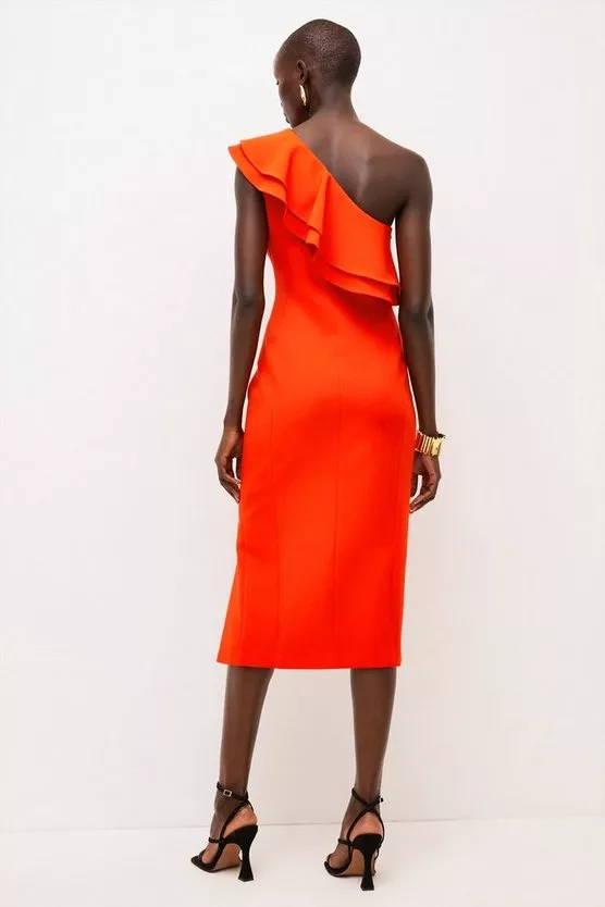 Karen millen orange midi new arrivals dress