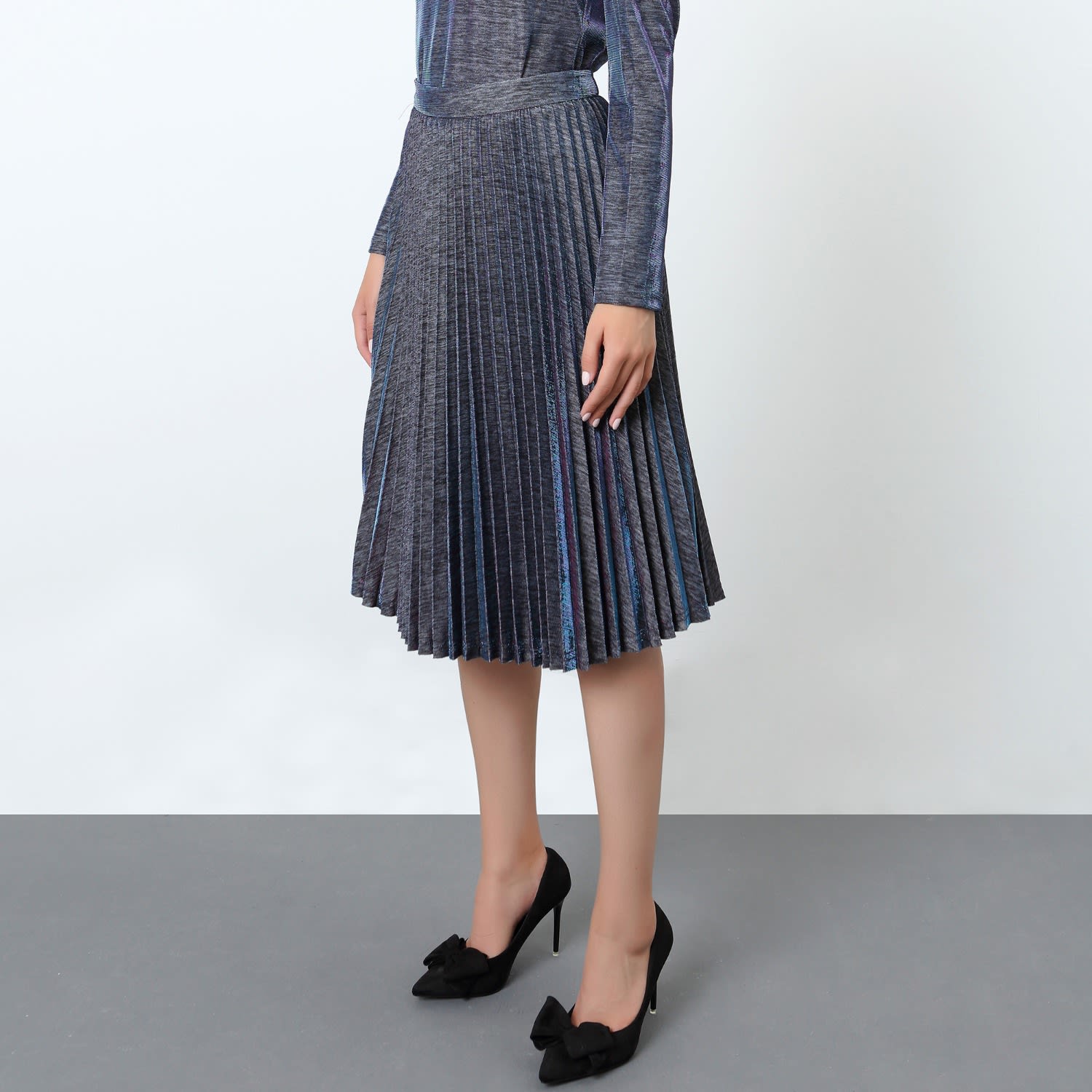 Product Item: Light blue pleated new arrivals skirt knee length