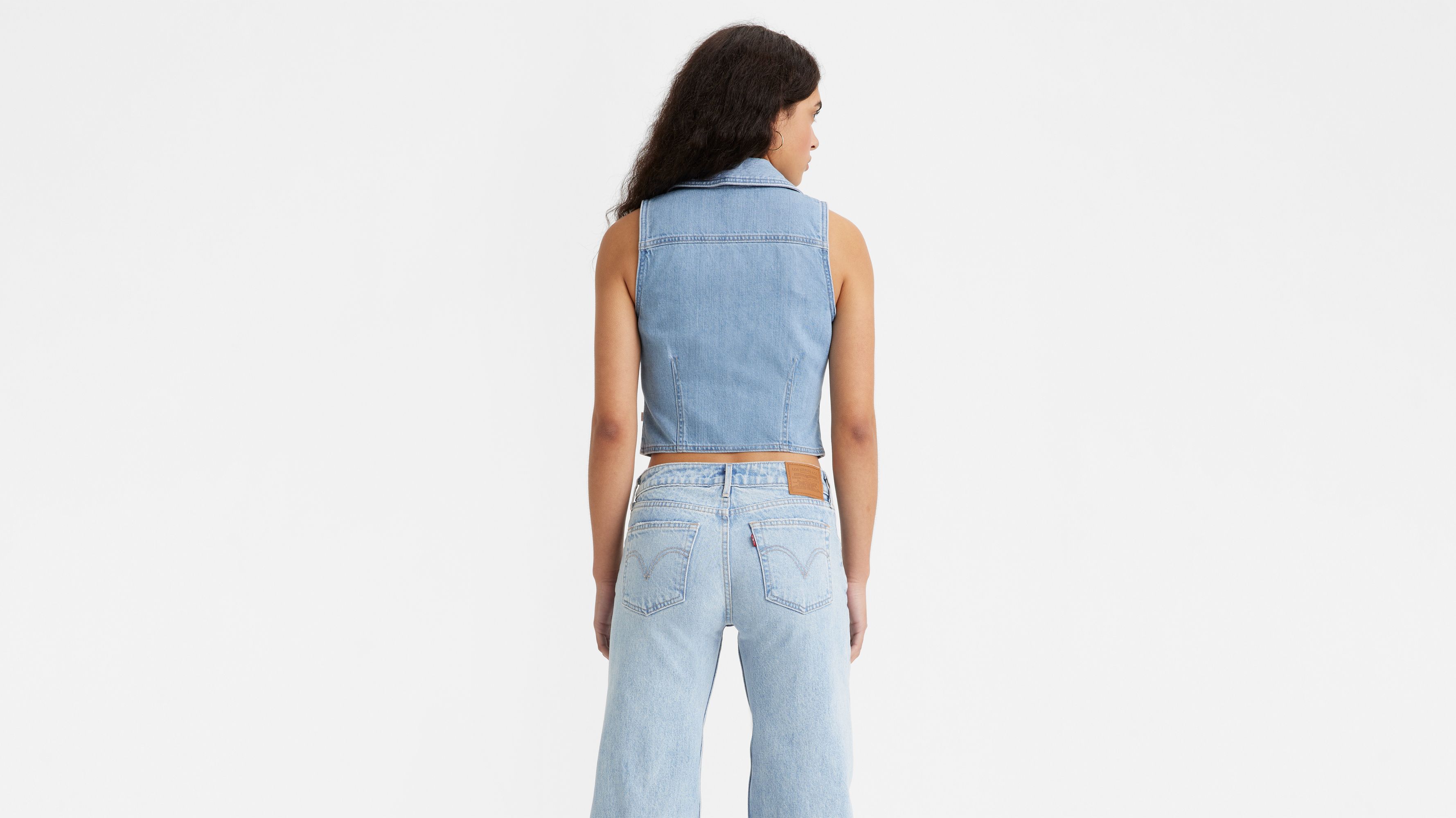 Long blue jean new arrivals vest