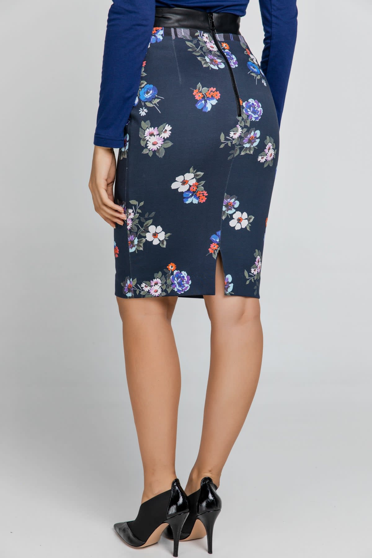 Product Item: Navy blue printed pencil new arrivals skirt