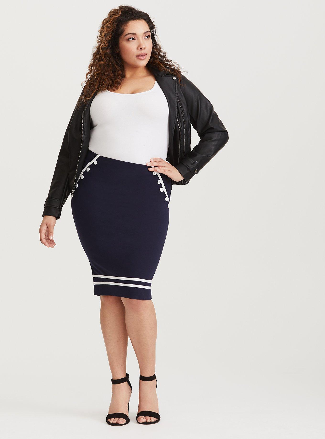 Navy ponte knit pencil new arrivals skirt