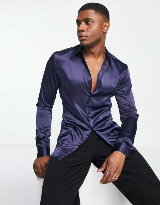 Navy satin shirt new arrivals dress