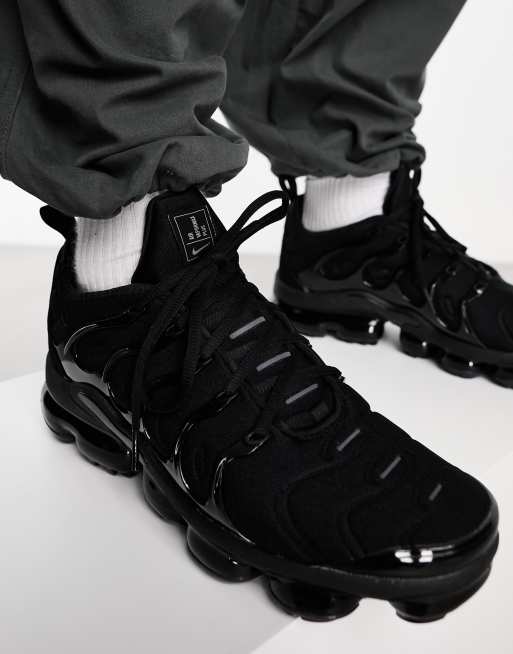 Product Item: Nike air vapormax plus triple black on new arrivals feet