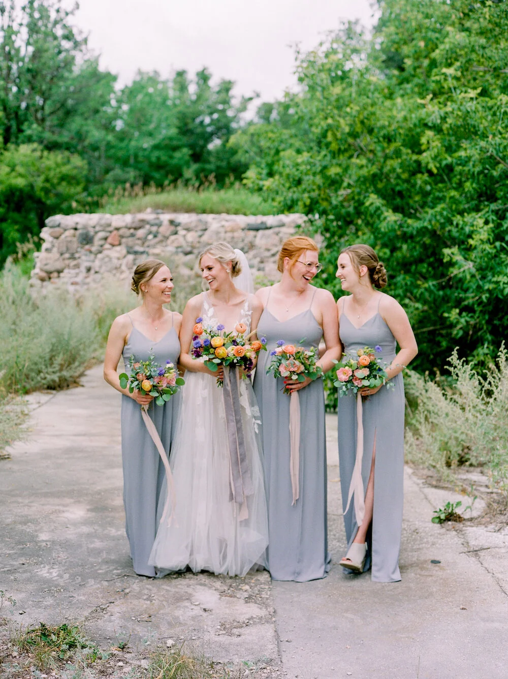 Peach and grey bridesmaid new arrivals dresses